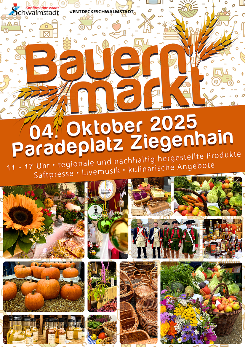 Am Samstag, dem 4. Oktober, lädt der beliebte Bauernmarkt in Ziegenhain wieder Besucher aus nah und fern auf den Paradeplatz ein. Vor historischer Kulisse erwartet die Gäste von 11 bis 17 Uhr