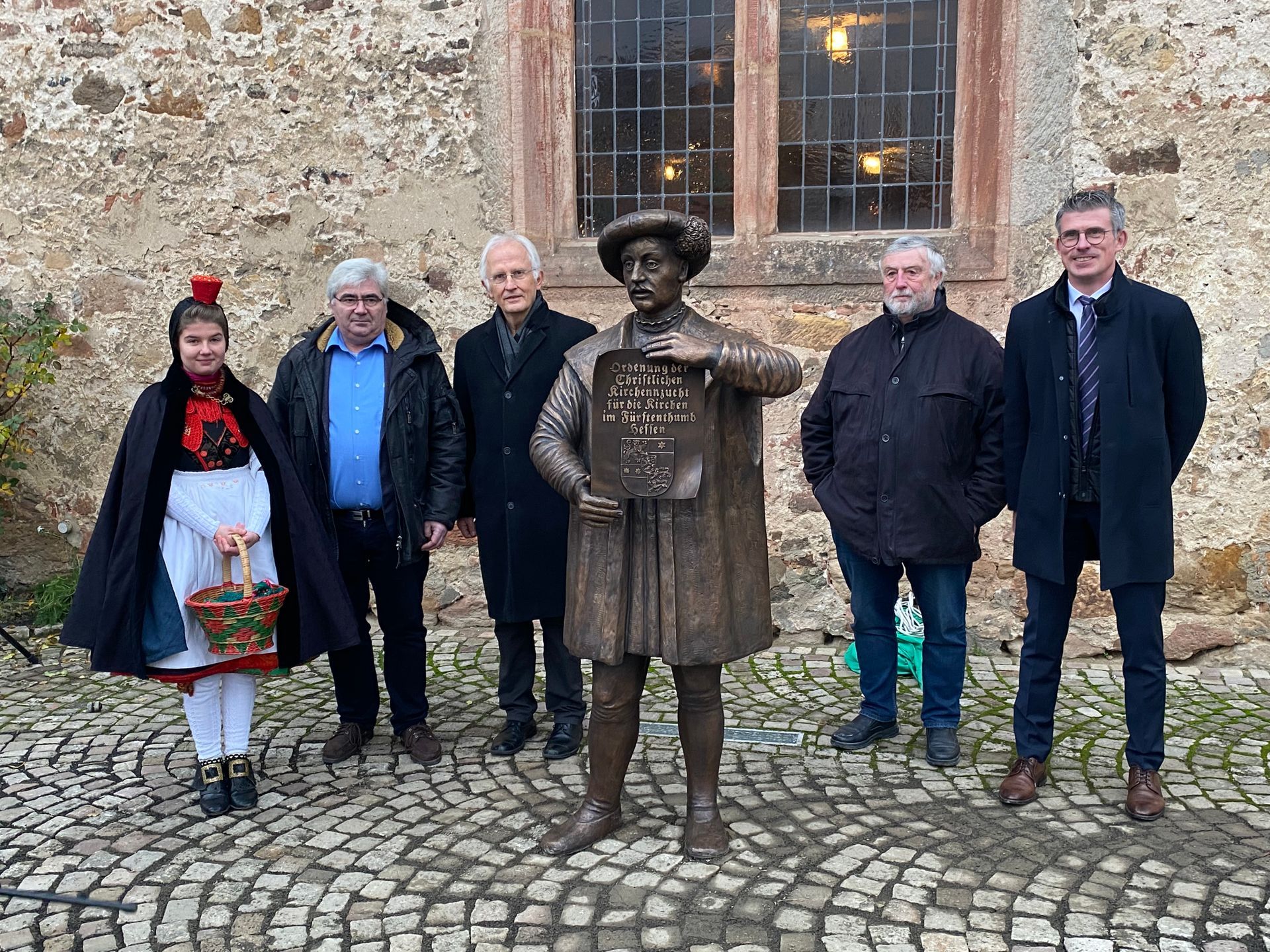 Wer in den vergangenen Wochen über den historischen Paradeplatz in Ziegenhain gelaufen ist, dem dürfte er bereits aufgefallen sein: der bronzene Landgraf vor der evangelischen Schlosskirche. Er ist Teil des in Entstehung befindlichen Denkmals, das an ein historisches Ereignis aus dem Jahr 1539 erinnern soll: den Erlass der Ziegenhainer Kirchenzuchtordnung und die Entstehung der Konfirmation.
