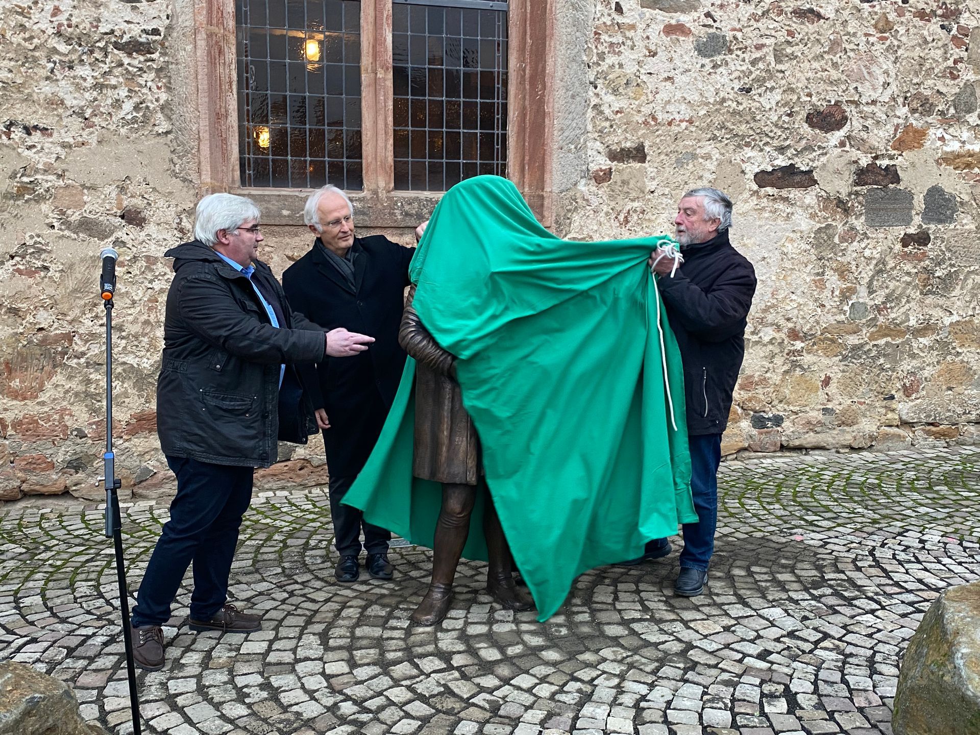 Dank zahlreicher Spenden und des Engagements vom Verein zur Förderung der Konfirmationsstadt konnte die Skulptur in Auftrag gegeben werden. Enthüllt wurde die erste von fünf Figuren im Anschluss an die Eröffnungsfeier zum Schwälmer Weihnachtsmarkt im abgelaufenen Jahr. Christian Wachter (Vorsitzender des Vereins zur Förderung der Konfirmationsstadt), Bürgermeister a.D. Stefan Pinhard, Bürgermeister Tobias Kreuter, Rotkäppchen Maria-Lara Schmitt und Lutz Lesch (Schöpfer der Statue) zeigten die Figur erstmals einer breiten Öffentlichkeit.