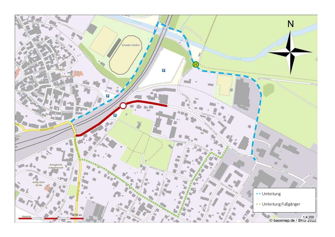 • Der Zugang zum Parkplatz des Friedhofs Treysa über die Ascheröder Straße ist nicht möglich. Alternativ wird der Friedhofsparkplatz Memeler Straße/Karlsbader Straße ab der Königsberger Straße ausgeschildert, um eine Orientierung für Besucher zu erleichtern. Besucher des Friedhofs Treysa können ihn zusätzlich über das Apfelgässchen vom Haaßehügel aus erreichen.