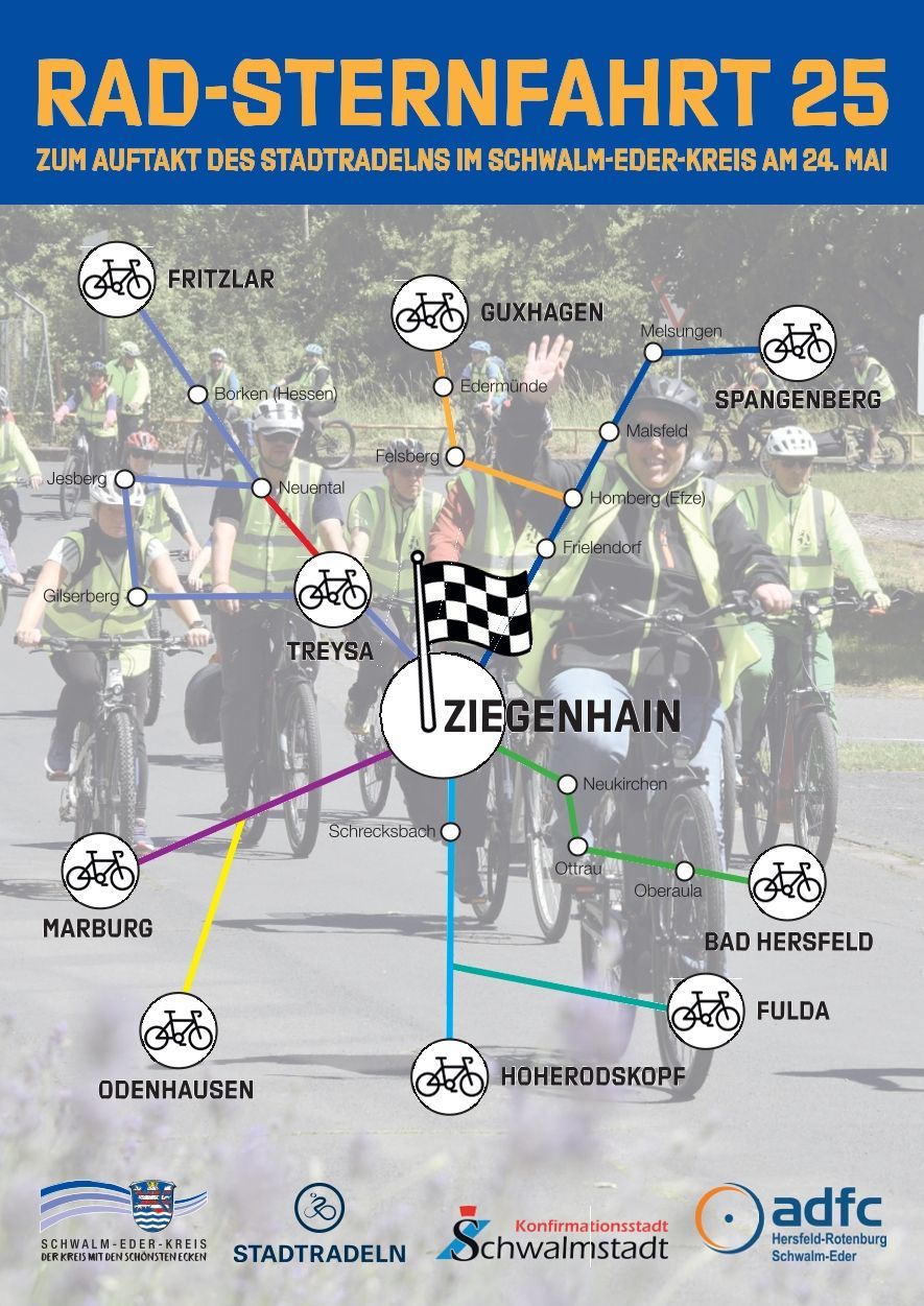 Am Samstag, den 24. Mai 2025, beginnt das STADTRADELN im Schwalm-Eder-Kreis mit einer gemeinsamen Radsternfahrt nach Schwalmstadt-Ziegenhain. Von verschiedenen Startpunkten aus führen geführte Radtouren – begleitet von erfahrenen Guides des Allgemeinen Deutschen Fahrrad-Clubs (ADFC) – zum zentralen Veranstaltungsort.