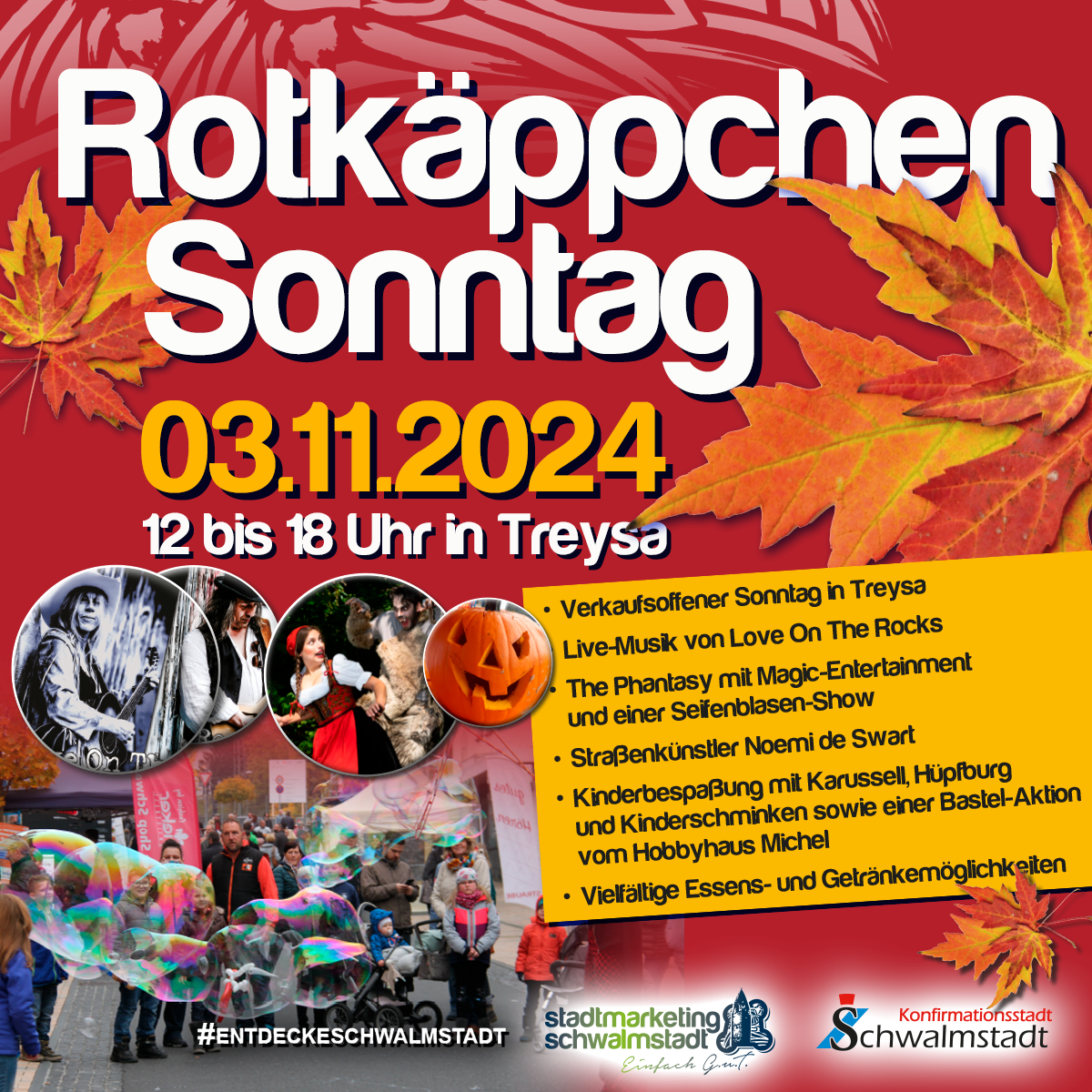 Am Sonntag, den 3. November 2024, findet in Treysa der Rotkäppchen-Sonntag statt – ein besonderes Event für die ganze Familie, dass die perfekte Mischung aus Shopping, Unterhaltung und kulinarischen Genüssen bietet. Der Gewerbe- und Tourismusverein G.u.T. sowie die Stadt Schwalmstadt laden von 12 bis 18 Uhr dazu ein, durch die Bahnhofstraße und Wagnergasse zu flanieren, die für diesen Tag zur Fußgängerzone umgestaltet werden.